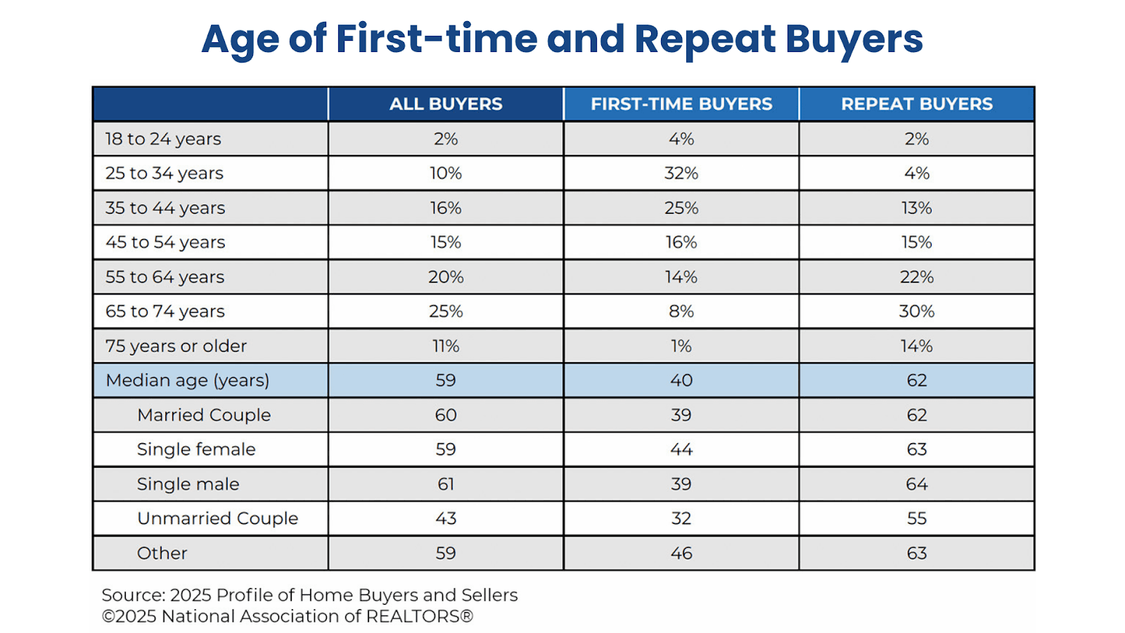 The National Association of Realtors’s Profile of Home Buyers and Sellers confirms that the median first time buyer is now 40 years old. That’s the oldest in the history of the report. It also shows that first time buyers account for only 21% of transactions, a dramatic drop from the historical norm where they made up about a third of purchases.